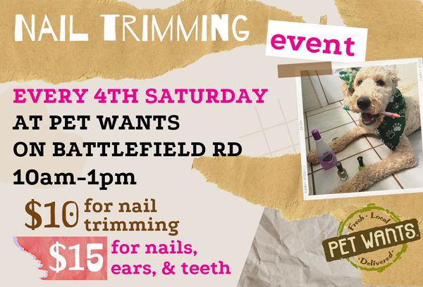 Join us for our charity Nail Trimming Event on the 4th Saturday of every month, from 10 am – 1 pm at E Battlefield Rd in the Fremont Shoppin...